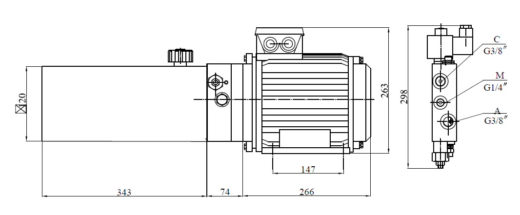 此液壓動(dòng)力單元由高壓齒輪泵、交流電機(jī)、液壓閥、油箱等零部件有機(jī)結(jié)合為一體。為液壓登車橋提供大小橋板的升降和閉合功能,可控制兩組單作用油缸。
