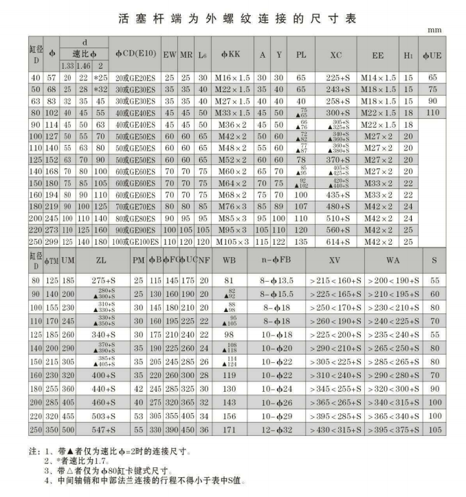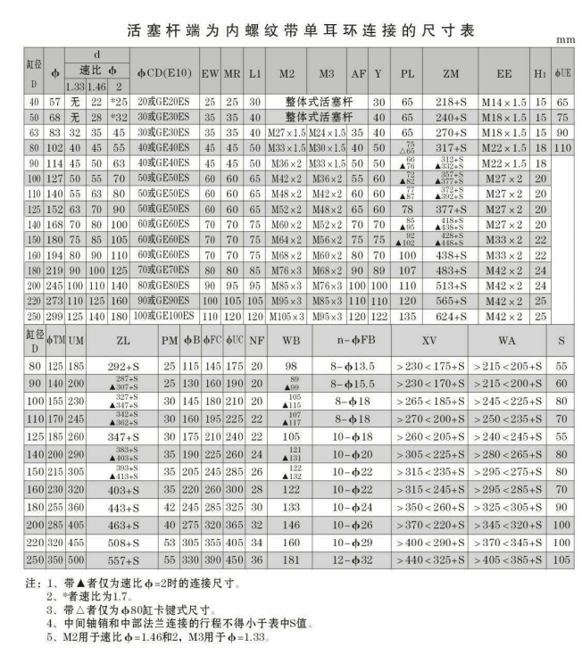 工程液壓油缸參數(shù)大全