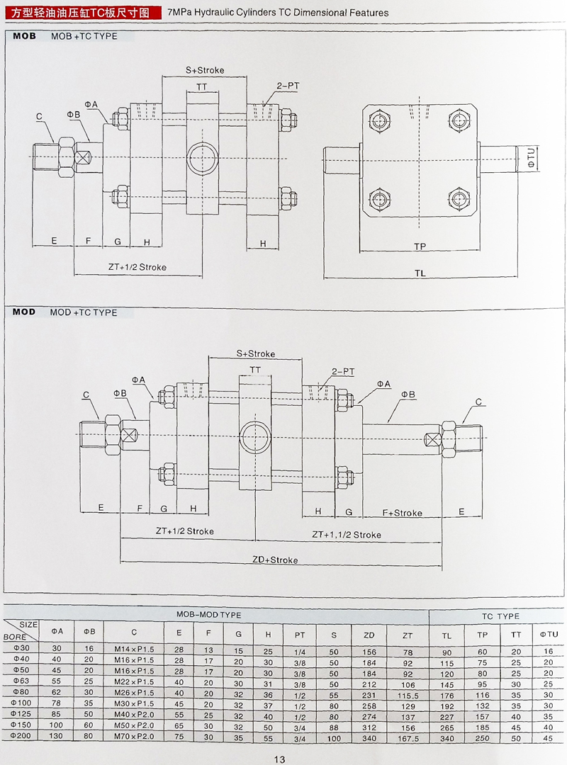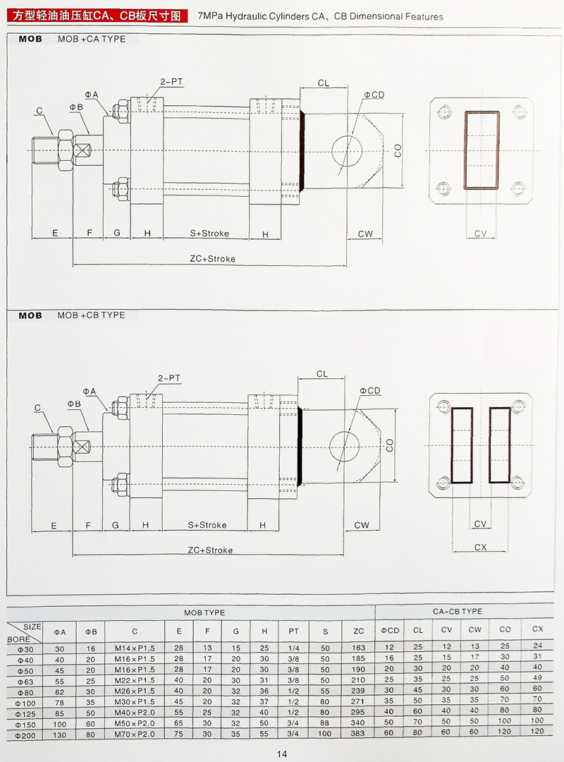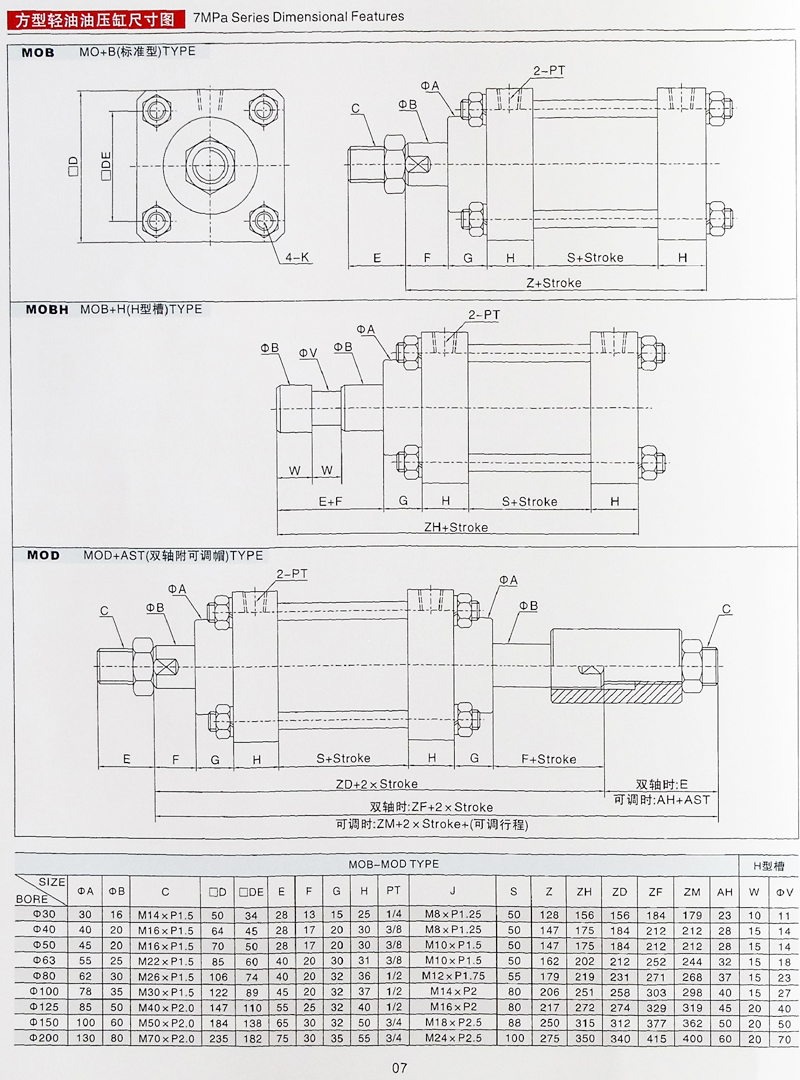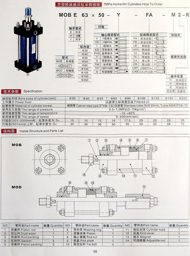 MOB拉桿油缸參數(shù)大全