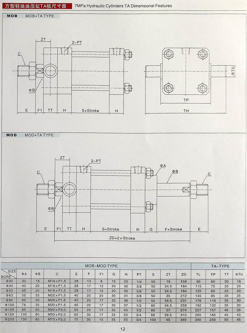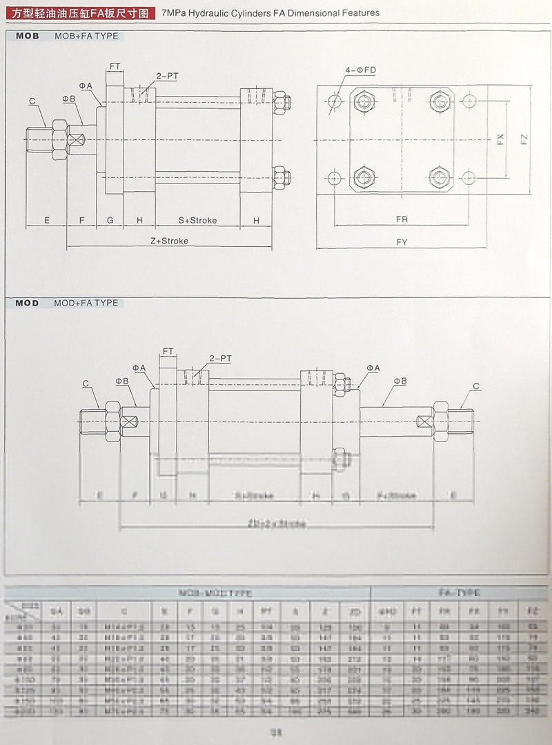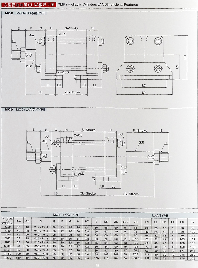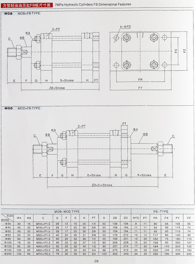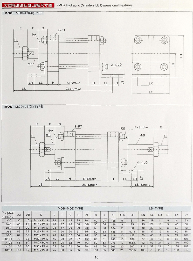 MOB拉桿油缸參數(shù)大全